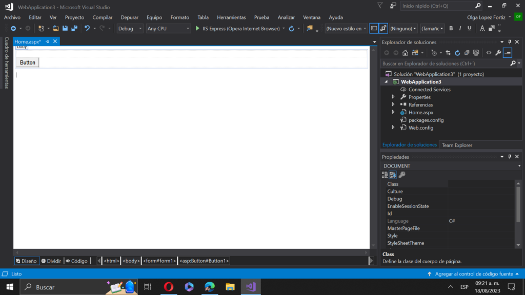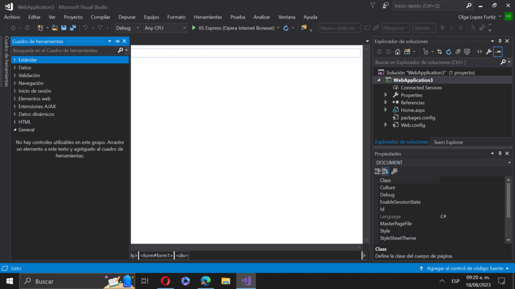 Crear una página web ASPX con lenguaje C#