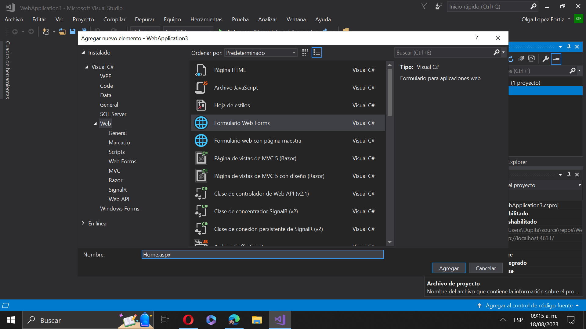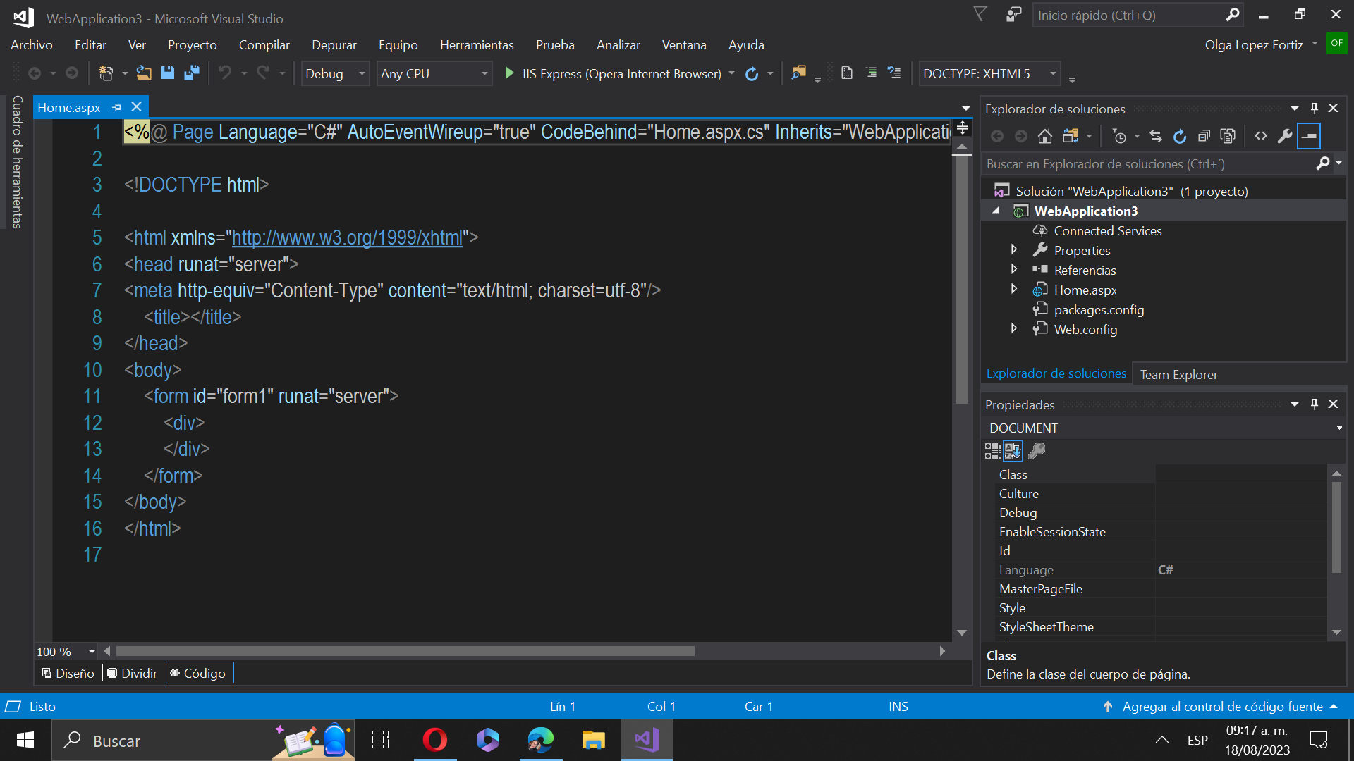 Crear una página web ASPX con lenguaje C#