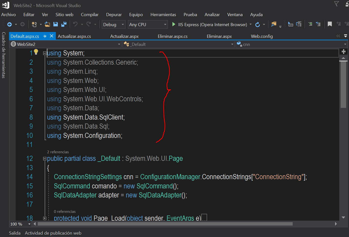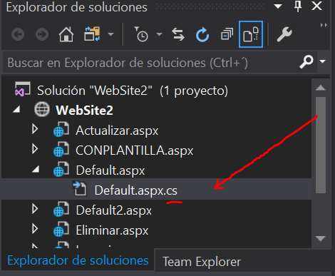 C# actúa con lenguaje embebido dentro de ASPX y su extensión es CS. Ahora veremos como se ve un archivo del lenguaje: